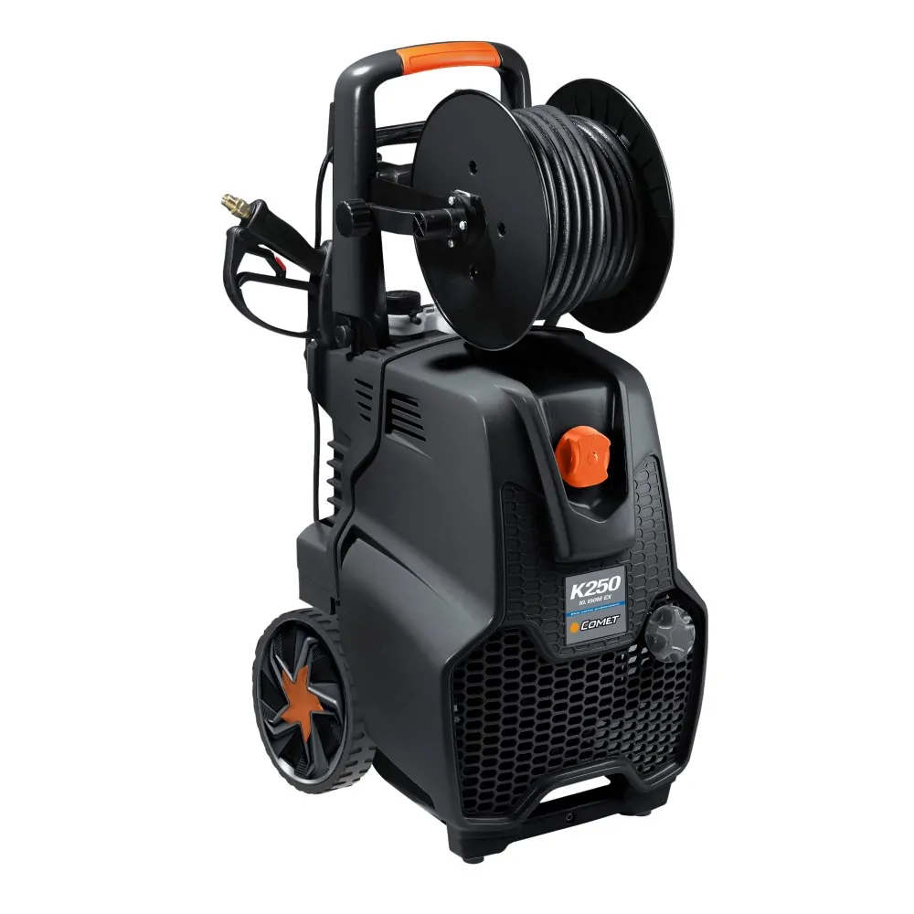 De Comet K250 is een semi professionele koudwater hogedrukreiniger die zowel horizontaal als verticaal gebruikt kan worden. Dit maakt dat deze compacte hogedrukspuit op vele gebieden inzetbaar is. De K250 heeft een werkdruk tot 150 bar en een debiet tot 10 l/min.