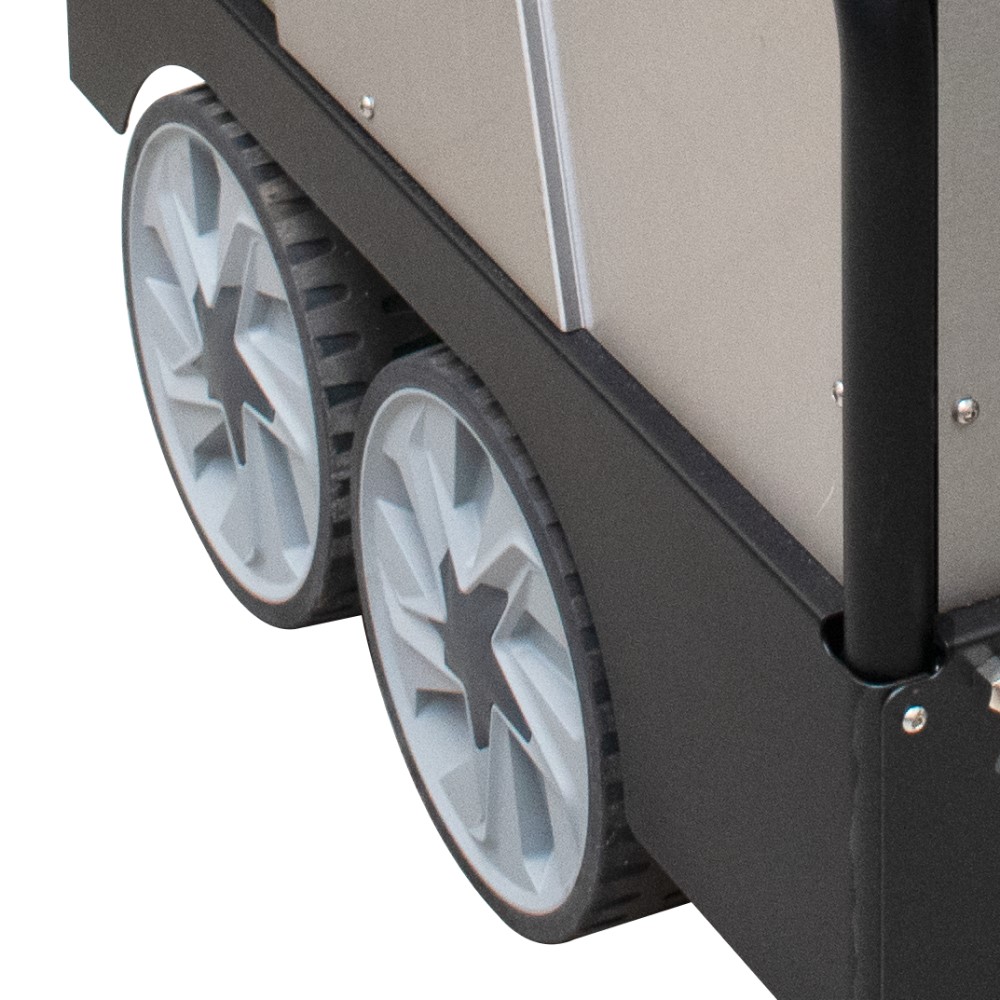 - Vier wielen (Ø 260 mm) met rem