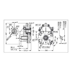 MPTO – reductiekast PTO – pompserie: 47(VHT) – 59(E3) – 66(VHT-SS) – 1000 tpm – PTO aandrijving – as Ø1 3/8″ – Reductie i=1,9 (540/1000 tpm) – max 7,0 kW