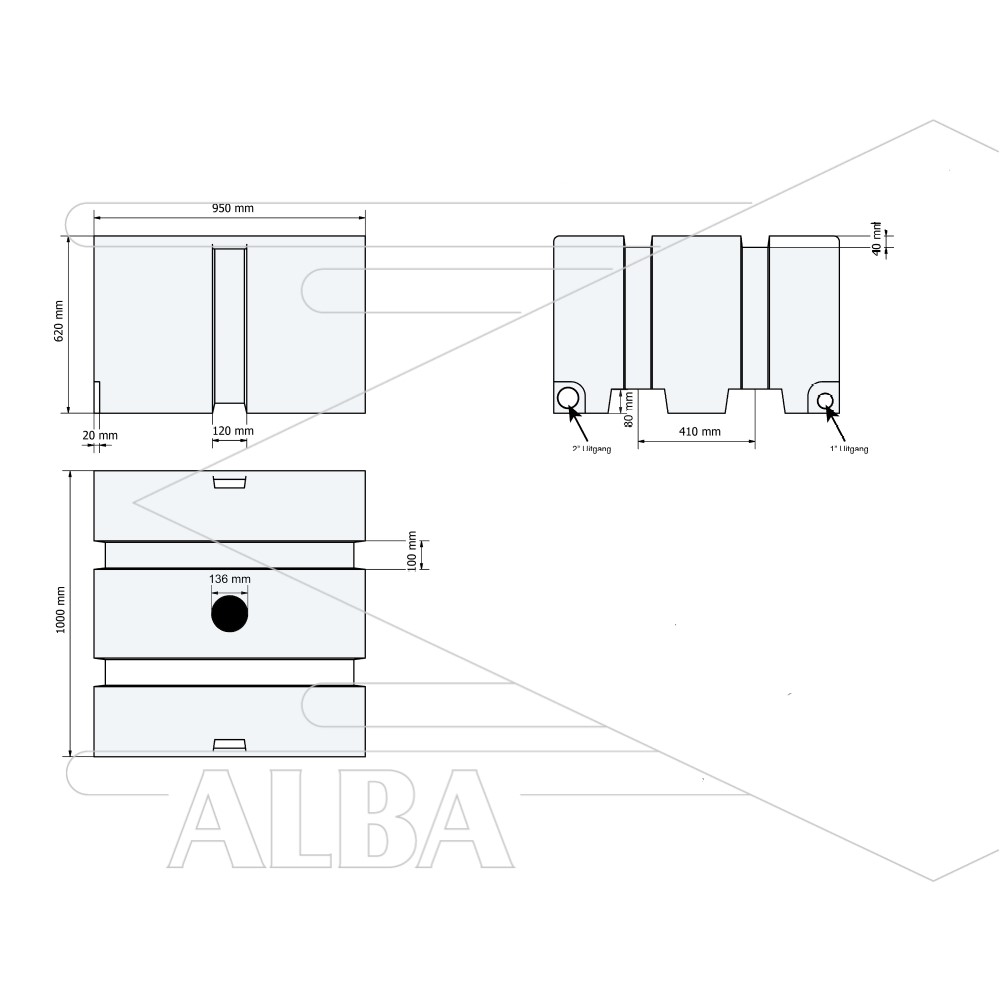 Transport watertank van 500 liter met handvaten en inkepingen en een 12 cm deksel, 1 en 2 inch uitgang Onze 500 liter half transparante, gewicht tank dient voornamelijk als tegengewicht om bijvoorbeeld grote tenten op evenementen op hun plaats te houden, maar ook voor andere objecten is hij te gebruiken als tegengewicht. De tank is voorzien van hendels, waardoor hij eenvoudig op te tillen is. Deze hendels dienen ook als bevestigingspunt op de tank om hem aan een object vast te maken. De tank heeft aan de onderkant twee uitsparingen waardoor hij met een palletwagen of heftruck te verplaatsen is. Dit is handig wanneer de tank gevuld verplaatst moet worden. De tank heeft een messing aansluiting van 1 inch en 2 inch met binnendraad op het laagste punt aan zijkant, waardoor hij snel leeggemaakt kan worden. De tank heeft een mangat met deksel van 12cm diameter. Volledig gevuld weegt de tank 500KG. De tanks zijn stapelbaar wanneer zij niet gevuld zijn en dus zeer geschikt voor transport.