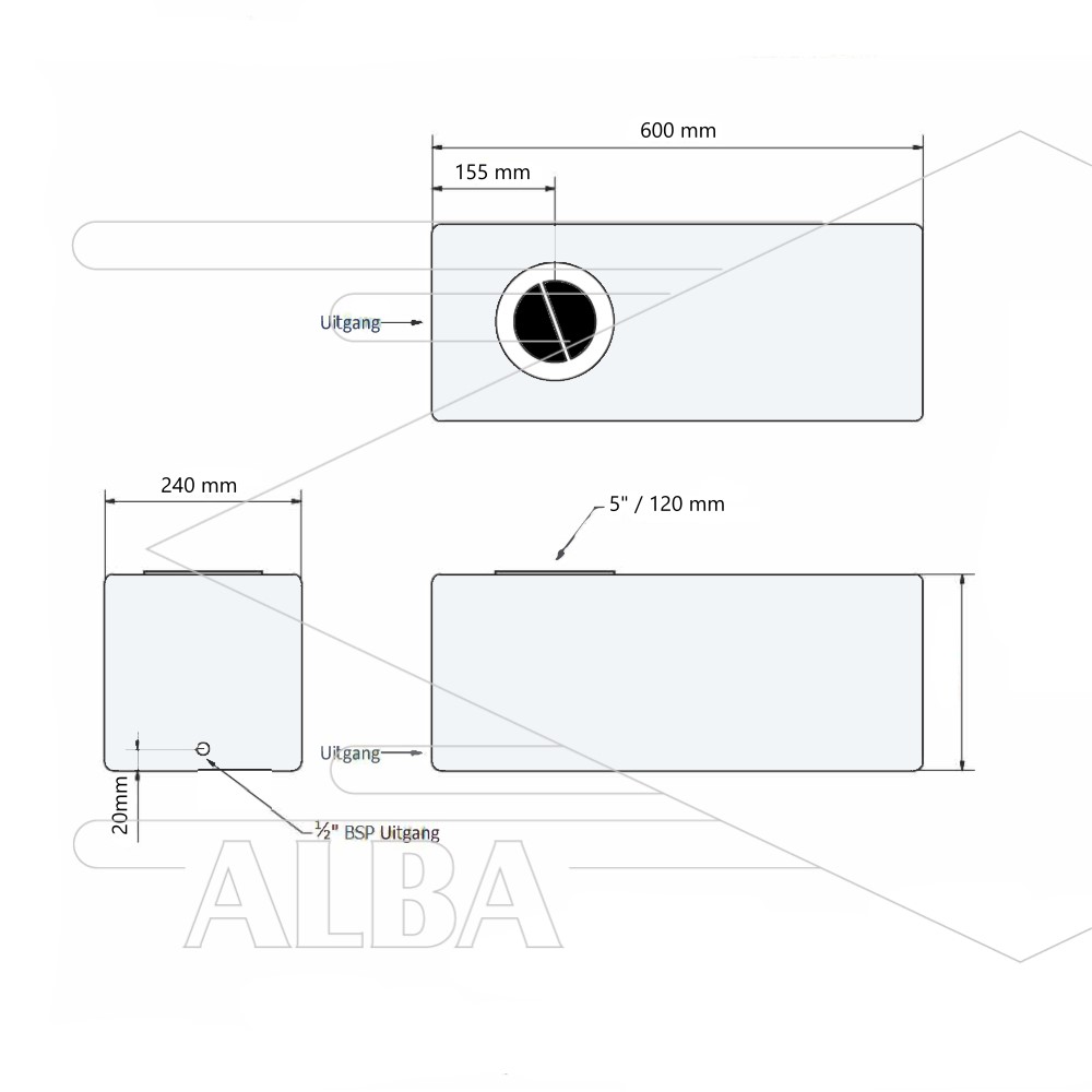 Kleine 32 liter platte tank 12 cm deksel en 1/2 inch uitgang Onze 32 liter half transparante watertanks zijn geschikt om drinkwater en andere vloeistoffen in op te slaan en te vervoeren. De tanks hebben een 1/2 inch messing uitgang met binnendraad. De deksel heeft een diameter van 12 cm.