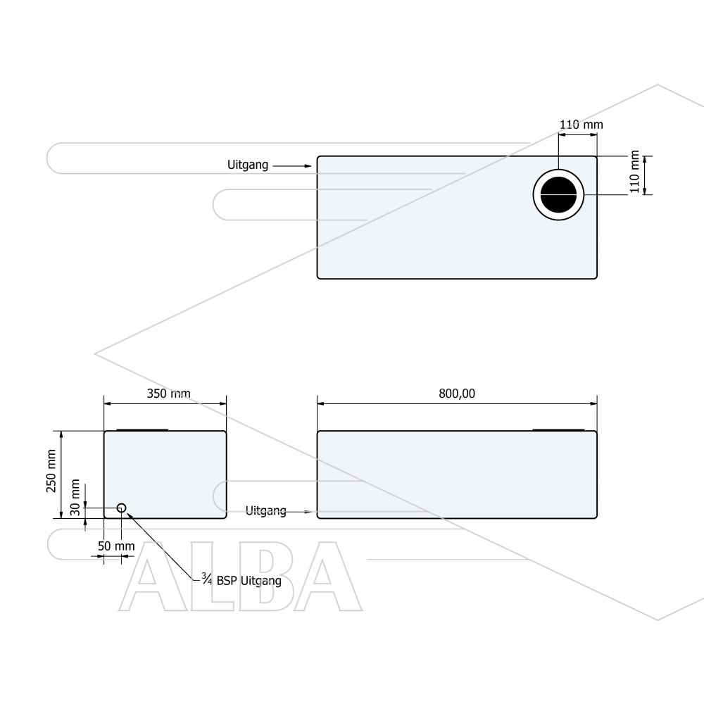 Watertank Horizontaal met schot - 250 Liter