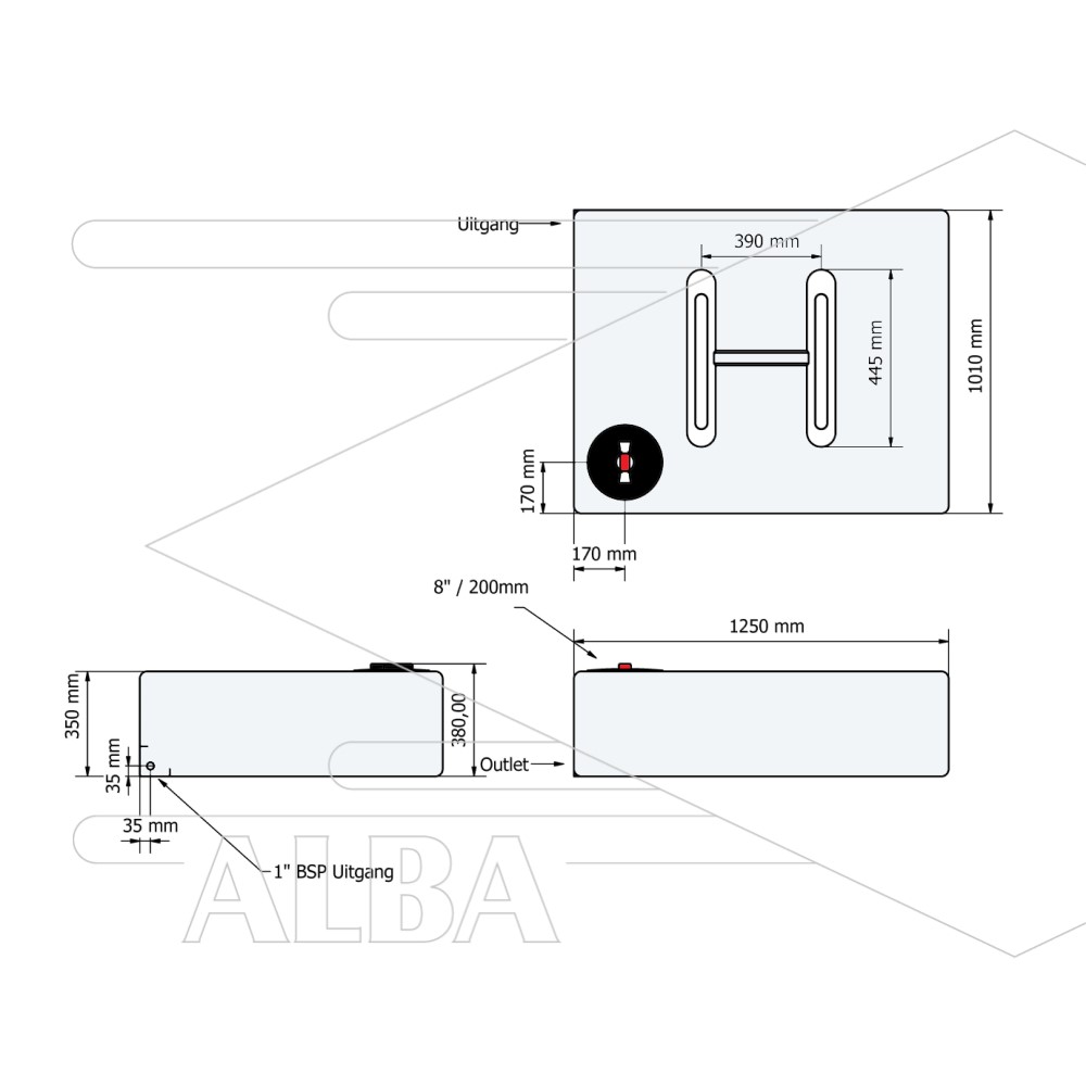 Platte watertank van 400 liter met schot en een deksel van 20 cm en 1 inch uitgang Onze 400 liter half transparante, platte watertanks zijn geschikt om drinkwater en andere vloeistoffen in op te slaan en te vervoeren. De tanks hebben een 1 inch messing uitgang met binnendraad. De deksel heeft een diameter van 20 cm.
