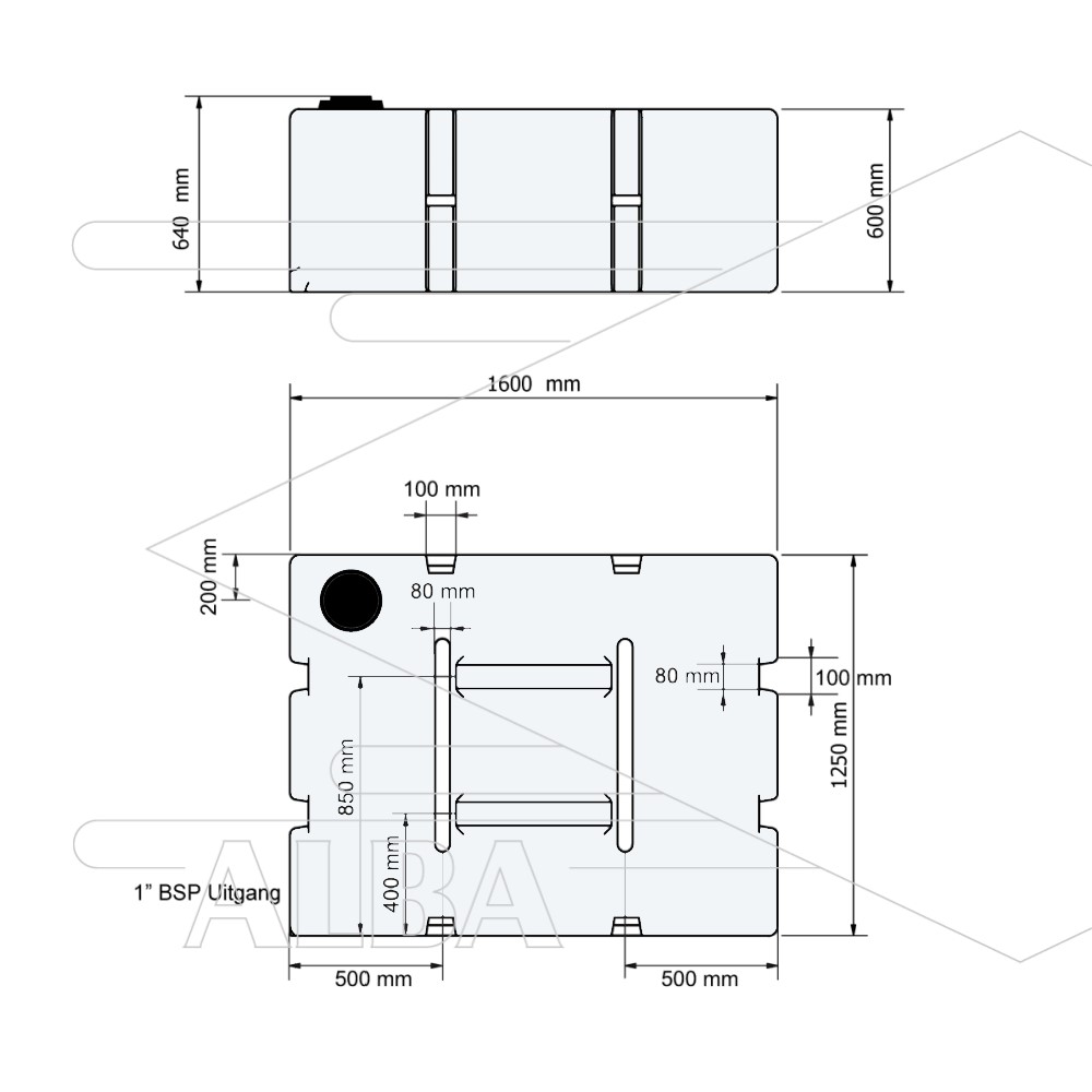 Platte tank van 1000 liter met schotten en een deksel an 20 cm en 1 inch uitgang Onze 1000 liter half transparante, platte watertanks zijn geschikt om drinkwater en andere vloeistoffen in op te slaan en te vervoeren. De tanks hebben een 1 inch messing uitgang met binnendraad. De deksel heeft een diameter van 20 cm.