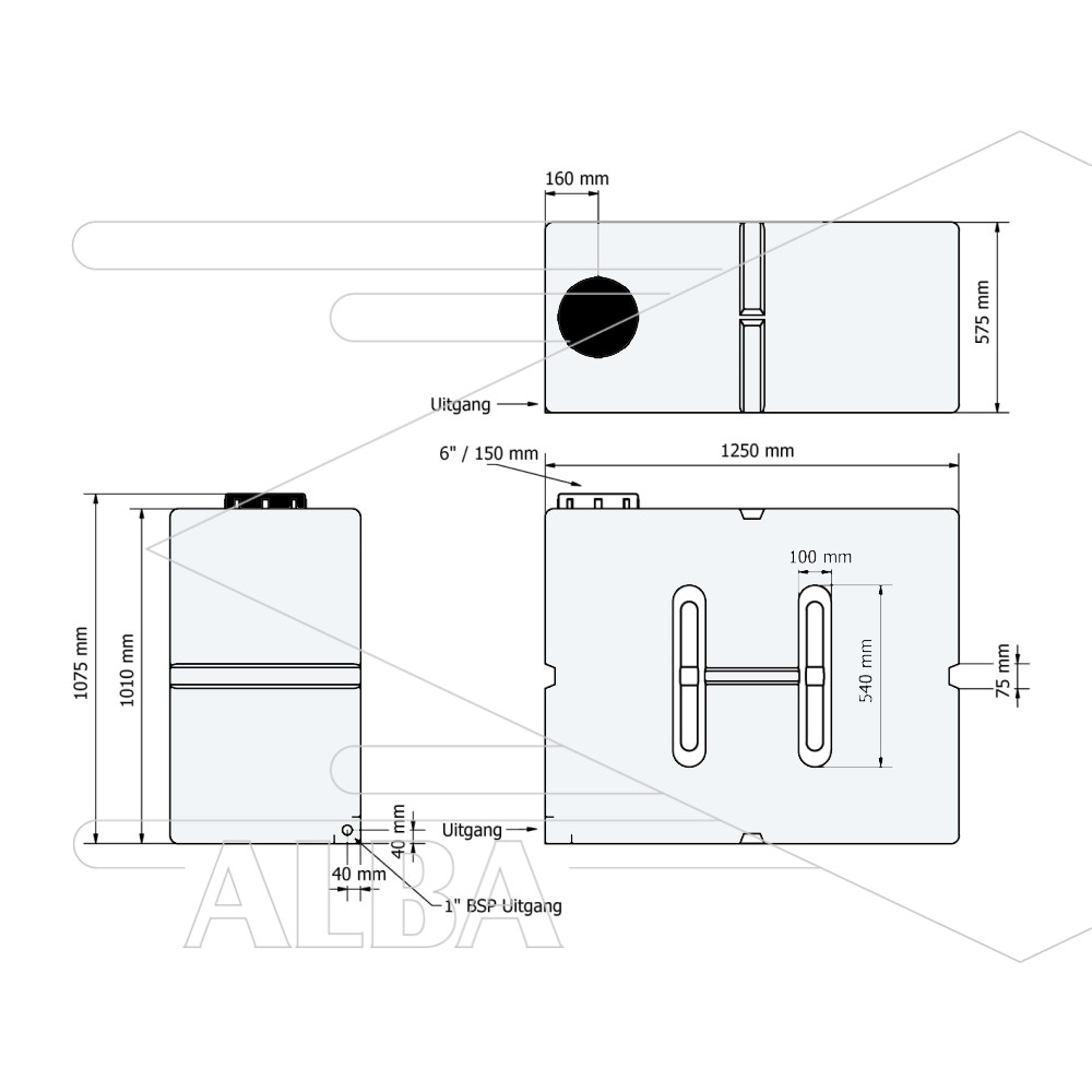Watertank Verticaal met schotten - 1000 Liter